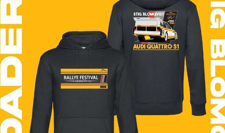 Este año 2026, el Rallye Festival Hoznayo tendrá el privilegio de contar con Stig Blomqvist como padrino de esta nueva edición. Para rendir homenaje a una de las leyendas más admiradas del mundo de los Rallyes, hemos creado una sudadera exclusiva inspirada en los icónicos colores del Equipo Audi Grupo B, símbolo de una era dorada del automovilismo.