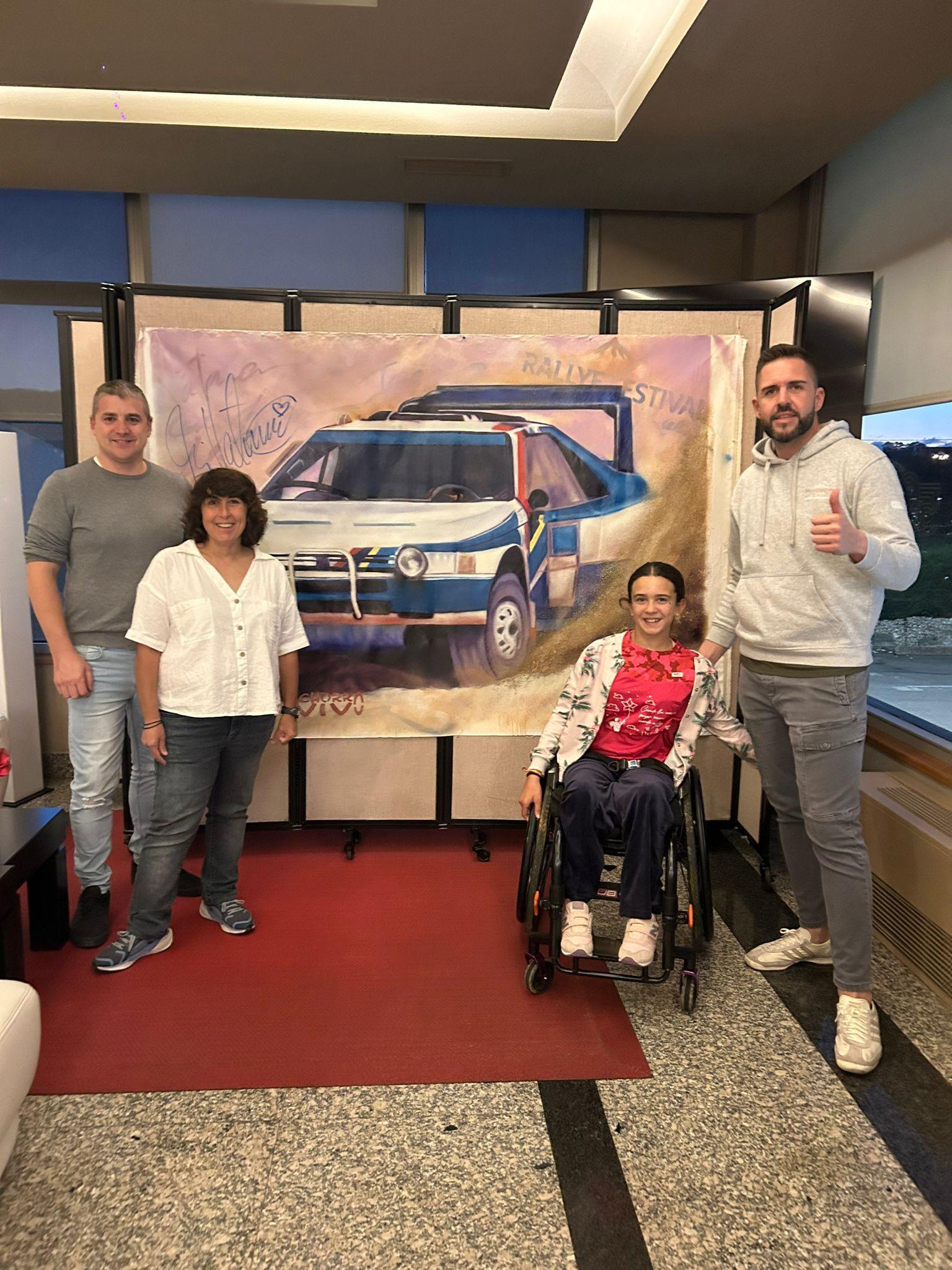 El acto contó con la presencia de Marcos Diego Barquín, CEO del Grupo Adelma y promotor del Rallye Festival Hoznayo, el ganador de la subasta, la propia artista creadora, y SuperLu (Lucía Navarro). Esta impactante obra de gran formato fue creada en directo durante el prestigioso Rallye Festival Hoznayo 2025, rindiendo homenaje a una de las leyendas más emblemáticas del automovilismo: Ari Vatanen y su inolvidable participación en el Rally Dakar al volante del mítico Peugeot 405 T16.