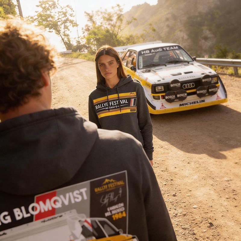 Este año 2026, el Rallye Festival Hoznayo tendrá el privilegio de contar con Stig Blomqvist como padrino de esta nueva edición. Para rendir homenaje a una de las leyendas más admiradas del mundo de los Rallyes, hemos creado una sudadera exclusiva inspirada en los icónicos colores del Equipo Audi Grupo B, símbolo de una era dorada del automovilismo.